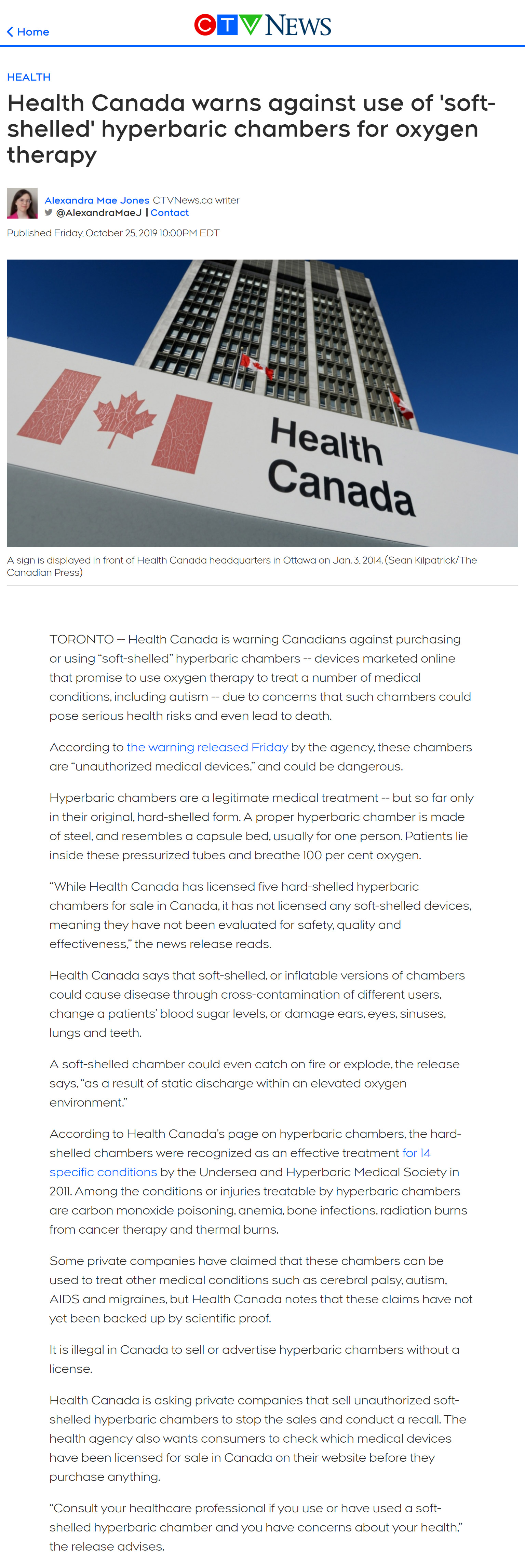 U mnogim zemljama ove meke komore su zabranjene za upotrebu, Kanada na primer. Jer se radi o neispitanim i nelicenciranim uređajima, gde su sve indikacije i korisna dejstva HBO terapije, vlasnici istih pripisali mekim komorama.